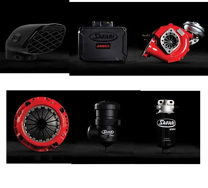 Safari Snorkel and Armax Performance Systems include Safari 4x4 Snorkels for Australia/New Zealand and International 4WD Vehicles, ECU Engine Control Units, Intercoolers, Turbochargers, Intercooled Turbo, Exhaust, Oil Cooler, Gearset and Clutches.