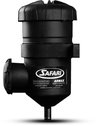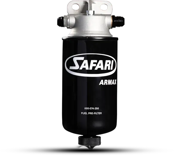 Contaminated diesel fuel is one of the most common causes of diesel engine failure. By adding a Safari ARMAX Auxiliary Fuel Pre-Filter, the diesel fuel is passed through a 30 micron primary filter before it reaches the vehicle’s standard final fuel filter.